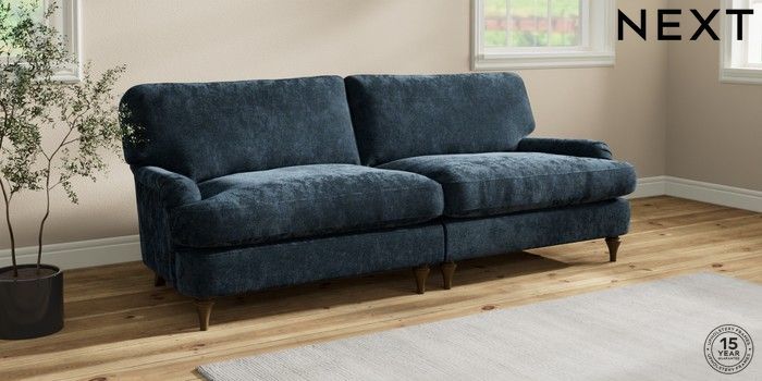 7.0.3 Buy Sadie Deep Relaxed Sit 4 Seater Sofa Distressed Velour Midnight Blue High Slim Turned - Mid from the Next UK online shop Click here to use our accessible website