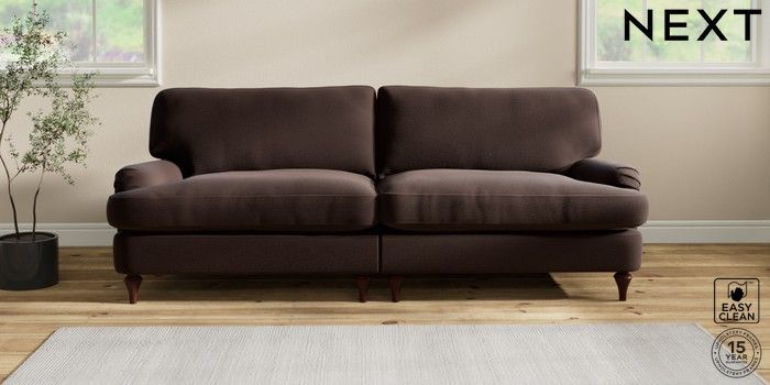 6.12.1 Buy Sadie Deep Relaxed Sit 4 Seater Sofa Fine Chenille Easy Clean Chocolate Brown High Slim Turned - Dark Brown from the Next UK online shop Click here to use our accessible website
