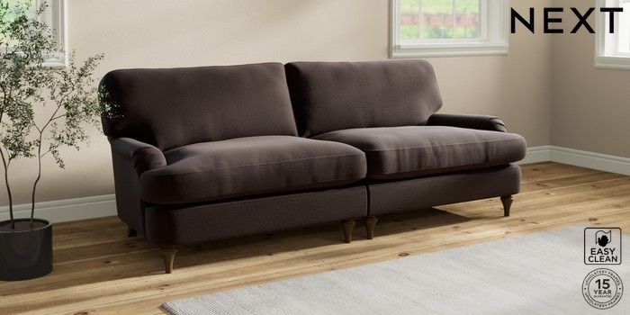 7.0.3 Buy Sadie Deep Relaxed Sit 4 Seater Sofa Fine Chenille Easy Clean Chocolate Brown High Slim Turned - Mid from the Next UK online shop Click here to use our accessible website