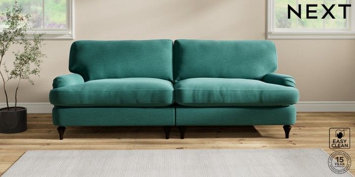 6.12.1 Buy Sadie Deep Relaxed Sit 4 Seater Sofa Fine Chenille Easy Clean Dark Juniper Green High Slim Turned - Dark from the Next UK online shop Click here to use our accessible website
