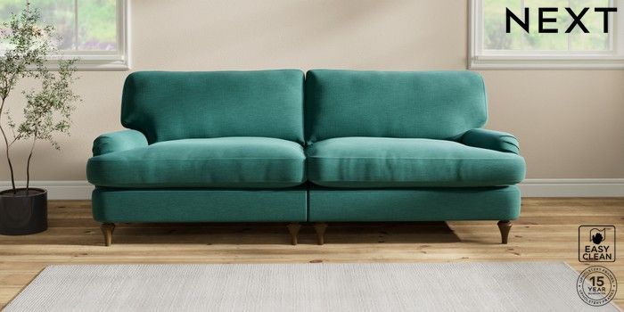 6.12.1 Buy Sadie Deep Relaxed Sit 4 Seater Sofa Fine Chenille Easy Clean Dark Juniper Green High Slim Turned - Mid from the Next UK online shop Click here to use our accessible website