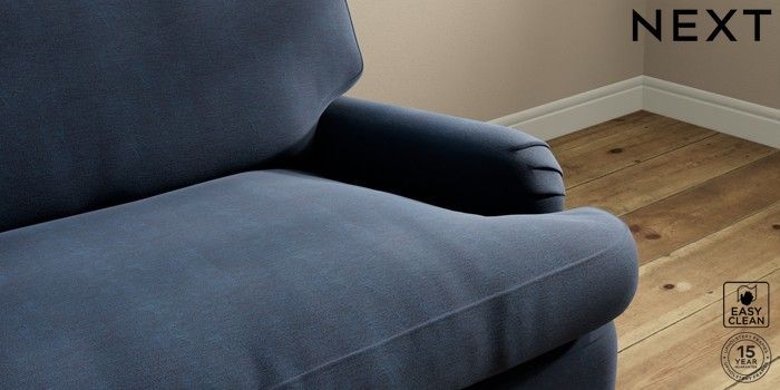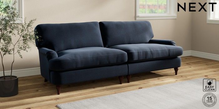 7.0.3 Buy Sadie Deep Relaxed Sit 4 Seater Sofa Fine Chenille Easy Clean Dark Navy Blue High Slim Turned - Dark Brown from the Next UK online shop Click here to use our accessible website