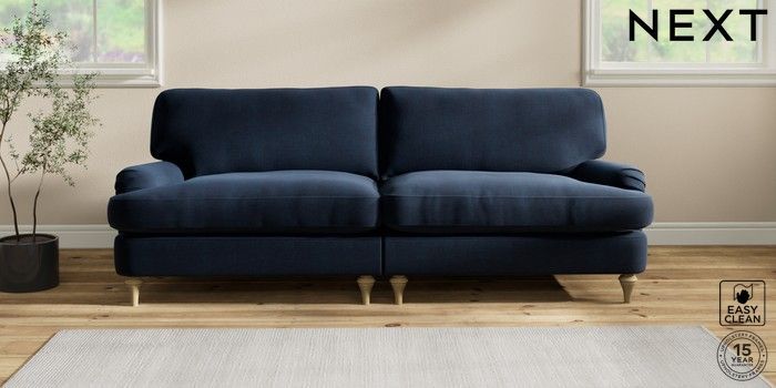 6.12.1 Buy Sadie Deep Relaxed Sit 4 Seater Sofa Fine Chenille Easy Clean Dark Navy Blue High Slim Turned - Light from the Next UK online shop Click here to use our accessible website