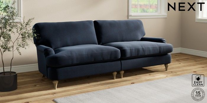 7.0.3 Buy Sadie Deep Relaxed Sit 4 Seater Sofa Fine Chenille Easy Clean Dark Navy Blue High Slim Turned - Light from the Next UK online shop Click here to use our accessible website