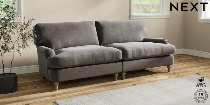7.0.3 Buy Sadie Deep Relaxed Sit 4 Seater Sofa Fine Chenille Easy Clean Dark Smoke Grey High Slim Turned - Light from the Next UK online shop Click here to use our accessible website