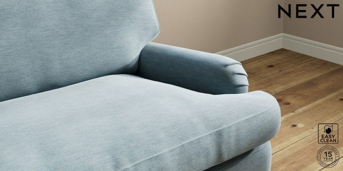 7.0.3 Buy Sadie Deep Relaxed Sit 4 Seater Sofa Fine Chenille Easy Clean Mid Blue High Slim Turned - Light from the Next UK online shop Click here to use our accessible website
