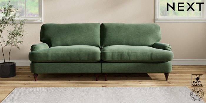 6.12.1 Buy Sadie Deep Relaxed Sit 4 Seater Sofa Fine Chenille Easy Clean Mid Khaki Green High Slim Turned - Dark Brown from the Next UK online shop Click here to use our accessible website