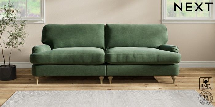 6.12.1 Buy Sadie Deep Relaxed Sit 4 Seater Sofa Fine Chenille Easy Clean Mid Khaki Green High Slim Turned - Light from the Next UK online shop Click here to use our accessible website
