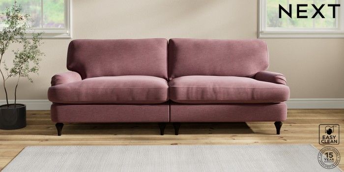 6.12.1 Buy Sadie Deep Relaxed Sit 4 Seater Sofa Fine Chenille Easy Clean Mid Mulberry Purple High Slim Turned - Dark from the Next UK online shop Click here to use our accessible website