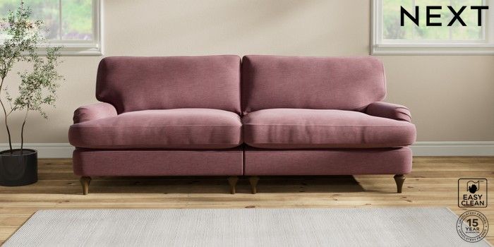 6.12.1 Buy Sadie Deep Relaxed Sit 4 Seater Sofa Fine Chenille Easy Clean Mid Mulberry Purple High Slim Turned - Mid from the Next UK online shop Click here to use our accessible website