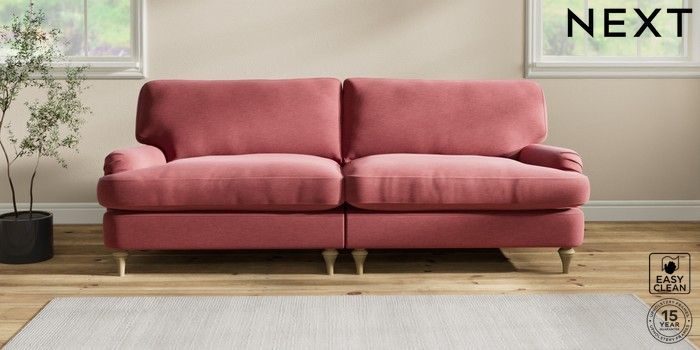 6.12.1 Buy Sadie Deep Relaxed Sit 4 Seater Sofa Fine Chenille Easy Clean Mid Pink High Slim Turned - Light from the Next UK online shop Click here to use our accessible website