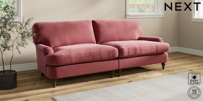 7.0.3 Buy Sadie Deep Relaxed Sit 4 Seater Sofa Fine Chenille Easy Clean Mid Pink High Slim Turned - Mid from the Next UK online shop Click here to use our accessible website