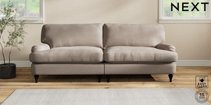 6.12.1 Buy Sadie Deep Relaxed Sit 4 Seater Sofa Fine Chenille Easy Clean Mid Taupe Brown High Slim Turned - Dark from the Next UK online shop Click here to use our accessible website