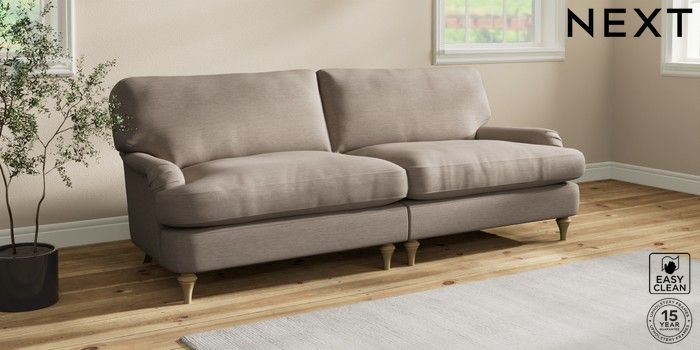 7.0.3 Buy Sadie Deep Relaxed Sit 4 Seater Sofa Fine Chenille Easy Clean Mid Taupe Brown High Slim Turned - Light from the Next UK online shop Click here to use our accessible website