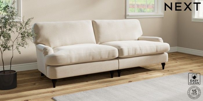 7.0.3 Buy Sadie Deep Relaxed Sit 4 Seater Sofa Fine Chenille Easy Clean Oyster High Slim Turned - Dark from the Next UK online shop Click here to use our accessible website