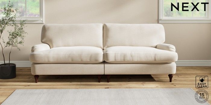 6.12.1 Buy Sadie Deep Relaxed Sit 4 Seater Sofa Fine Chenille Easy Clean Oyster High Slim Turned - Dark Brown from the Next UK online shop Click here to use our accessible website