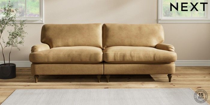 6.12.1 Buy Sadie Deep Relaxed Sit 4 Seater Sofa Luxe Chenille Honey Yellow High Slim Turned - Mid from the Next UK online shop Click here to use our accessible website