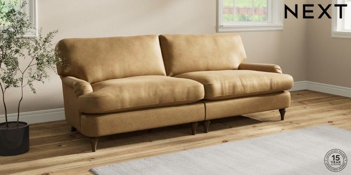 7.0.3 Buy Sadie Deep Relaxed Sit 4 Seater Sofa Luxe Chenille Honey Yellow High Slim Turned - Mid from the Next UK online shop Click here to use our accessible website