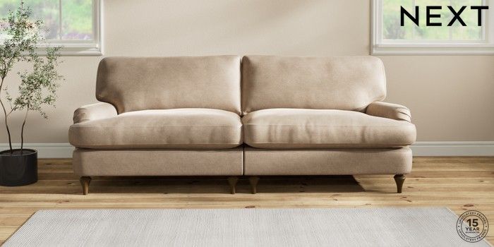 6.12.1 Buy Sadie Deep Relaxed Sit 4 Seater Sofa Luxe Chenille Mid Camel Beige High Slim Turned - Mid from the Next UK online shop Click here to use our accessible website