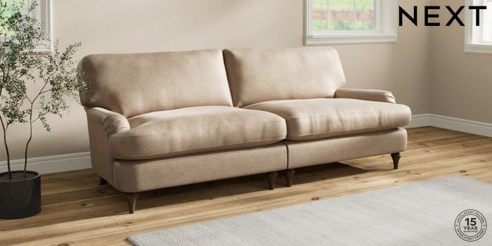 7.0.3 Buy Sadie Deep Relaxed Sit 4 Seater Sofa Luxe Chenille Mid Camel Beige High Slim Turned - Mid from the Next UK online shop Click here to use our accessible website