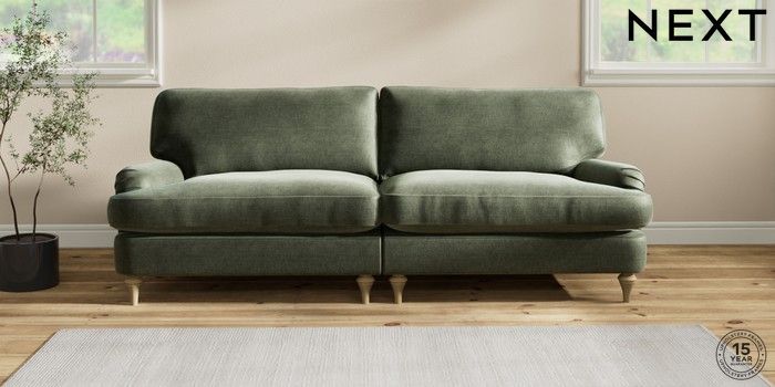 6.12.1 Buy Sadie Deep Relaxed Sit 4 Seater Sofa Luxe Chenille Mid Green High Slim Turned - Light from the Next UK online shop Click here to use our accessible website
