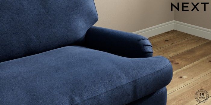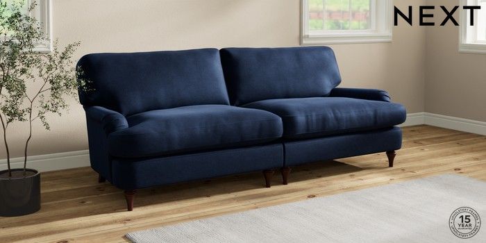 7.0.3 Buy Sadie Deep Relaxed Sit 4 Seater Sofa Luxe Chenille Navy Blue High Slim Turned - Dark Brown from the Next UK online shop Click here to use our accessible website