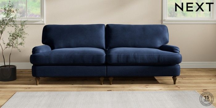 6.12.1 Buy Sadie Deep Relaxed Sit 4 Seater Sofa Luxe Chenille Navy Blue High Slim Turned - Mid from the Next UK online shop Click here to use our accessible website