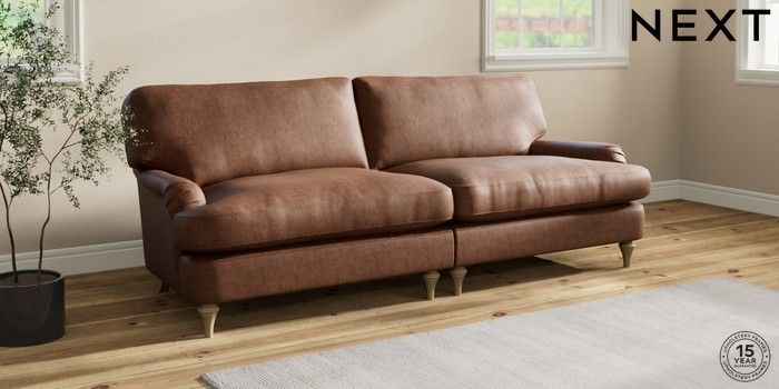 7.0.3 Buy Sadie Deep Relaxed Sit 4 Seater Sofa Monza Faux Leather Easy Clean Chestnut Brown High Slim Turned - Light from the Next UK online shop Click here to use our accessible website
