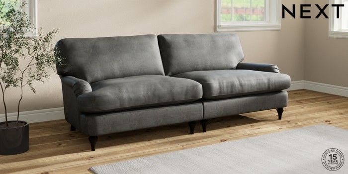 7.0.3 Buy Sadie Deep Relaxed Sit 4 Seater Sofa Monza Faux Leather Easy Clean Dark Grey High Slim Turned - Dark from the Next UK online shop Click here to use our accessible website