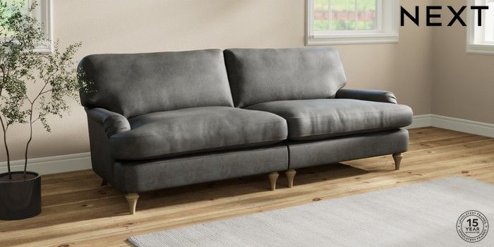 7.0.3 Buy Sadie Deep Relaxed Sit 4 Seater Sofa Monza Faux Leather Easy Clean Dark Grey High Slim Turned - Light from the Next UK online shop Click here to use our accessible website