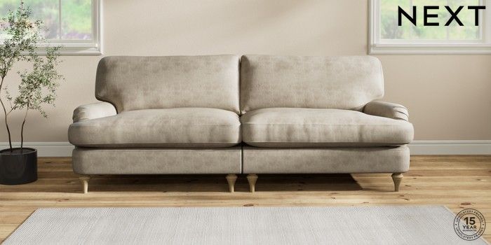 6.12.1 Buy Sadie Deep Relaxed Sit 4 Seater Sofa Monza Faux Leather Easy Clean Mink Brown High Slim Turned - Light from the Next UK online shop Click here to use our accessible website