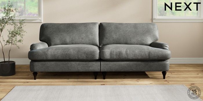 6.12.1 Buy Sadie Deep Relaxed Sit 4 Seater Sofa Plush Chenille Dark Grey High Slim Turned - Dark from the Next UK online shop Click here to use our accessible website