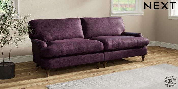 7.0.3 Buy Sadie Deep Relaxed Sit 4 Seater Sofa Plush Chenille Dark Plum Purple High Slim Turned - Mid from the Next UK online shop Click here to use our accessible website
