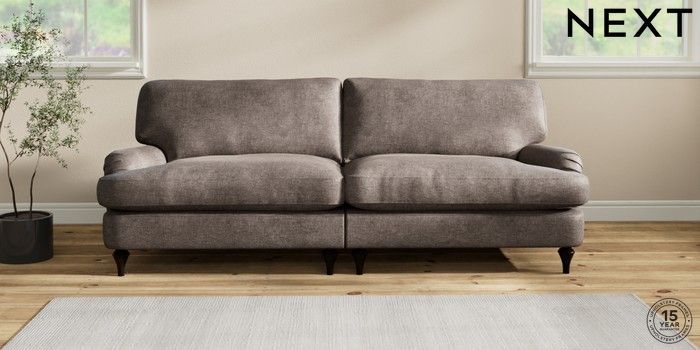 6.12.1 Buy Sadie Deep Relaxed Sit 4 Seater Sofa Plush Chenille Mink Brown High Slim Turned - Dark from the Next UK online shop Click here to use our accessible website