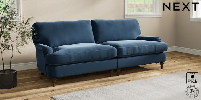 7.0.3 Buy Sadie Deep Relaxed Sit 4 Seater Sofa Plush Velvet Easy Clean Airforce Blue High Slim Turned - Mid from the Next UK online shop Click here to use our accessible website