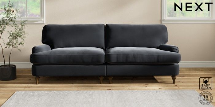 6.12.1 Buy Sadie Deep Relaxed Sit 4 Seater Sofa Plush Velvet Easy Clean Charcoal Grey High Slim Turned - Mid from the Next UK online shop Click here to use our accessible website