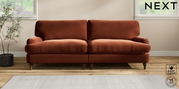6.12.1 Buy Sadie Deep Relaxed Sit 4 Seater Sofa Plush Velvet Easy Clean Ginger Orange High Slim Turned - Mid from the Next UK online shop Click here to use our accessible website
