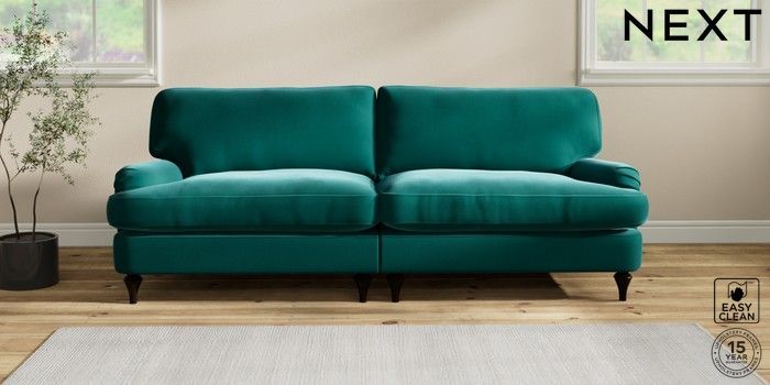 6.12.1 Buy Sadie Deep Relaxed Sit 4 Seater Sofa Plush Velvet Easy Clean Juniper Green High Slim Turned - Dark from the Next UK online shop Click here to use our accessible website
