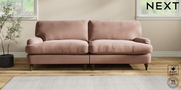 6.12.1 Buy Sadie Deep Relaxed Sit 4 Seater Sofa Plush Velvet Easy Clean Mid Natural High Slim Turned - Mid from the Next UK online shop Click here to use our accessible website