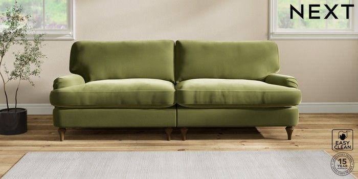 6.12.1 Buy Sadie Deep Relaxed Sit 4 Seater Sofa Plush Velvet Easy Clean Mid Olive Green High Slim Turned - Mid from the Next UK online shop Click here to use our accessible website
