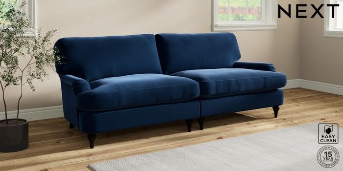 7.0.3 Buy Sadie Deep Relaxed Sit 4 Seater Sofa Plush Velvet Easy Clean Navy Blue High Slim Turned - Dark from the Next UK online shop Click here to use our accessible website