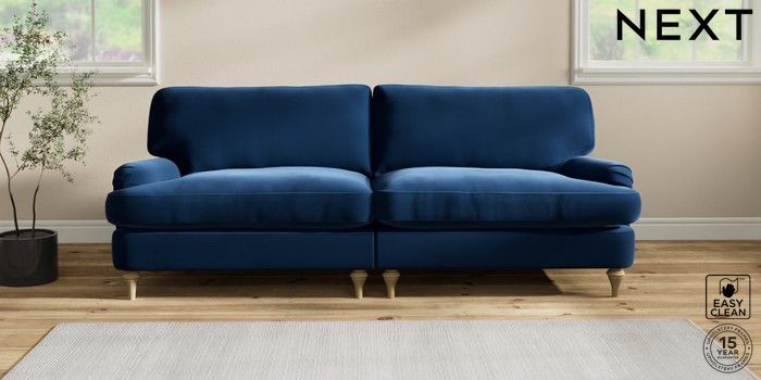 6.12.1 Buy Sadie Deep Relaxed Sit 4 Seater Sofa Plush Velvet Easy Clean Navy Blue High Slim Turned - Light from the Next UK online shop Click here to use our accessible website