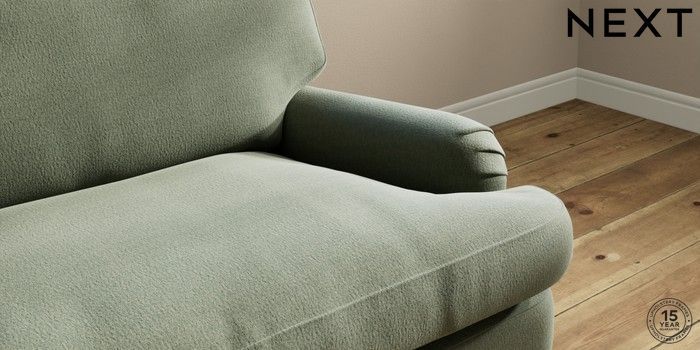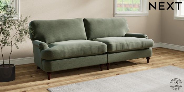 7.0.3 Buy Sadie Deep Relaxed Sit 4 Seater Sofa Relaxed Linen Look Dark Green High Slim Turned - Dark Brown from the Next UK online shop Click here to use our accessible website