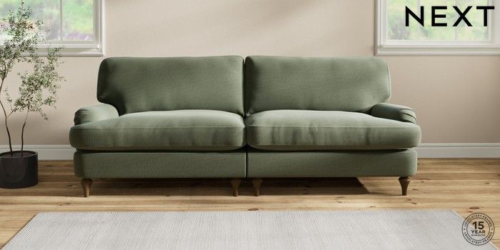 6.12.1 Buy Sadie Deep Relaxed Sit 4 Seater Sofa Relaxed Linen Look Dark Green High Slim Turned - Mid from the Next UK online shop Click here to use our accessible website