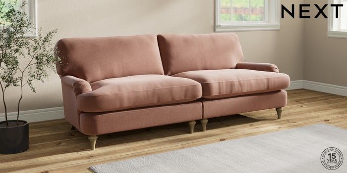 7.0.3 Buy Sadie Deep Relaxed Sit 4 Seater Sofa Relaxed Linen Look Light Rust Brown High Slim Turned - Light from the Next UK online shop Click here to use our accessible website