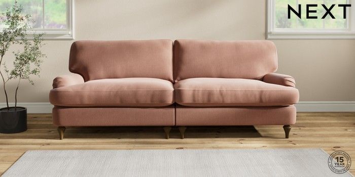 6.12.1 Buy Sadie Deep Relaxed Sit 4 Seater Sofa Relaxed Linen Look Light Rust Brown High Slim Turned - Mid from the Next UK online shop Click here to use our accessible website