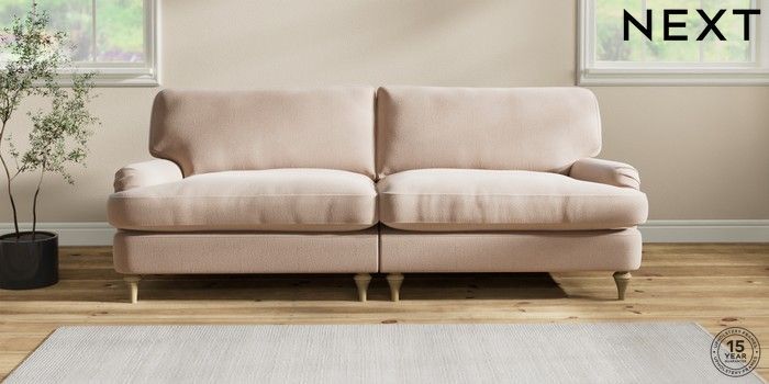 6.12.1 Buy Sadie Deep Relaxed Sit 4 Seater Sofa Relaxed Linen Look Mid Natural High Slim Turned - Light from the Next UK online shop Click here to use our accessible website