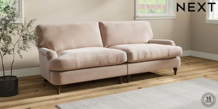 7.0.3 Buy Sadie Deep Relaxed Sit 4 Seater Sofa Relaxed Linen Look Mid Natural High Slim Turned - Mid from the Next UK online shop Click here to use our accessible website