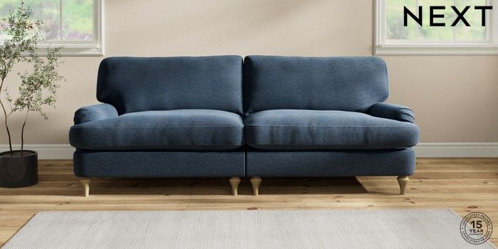 6.12.1 Buy Sadie Deep Relaxed Sit 4 Seater Sofa Ripple Chenille Dark Blue High Slim Turned - Light from the Next UK online shop Click here to use our accessible website