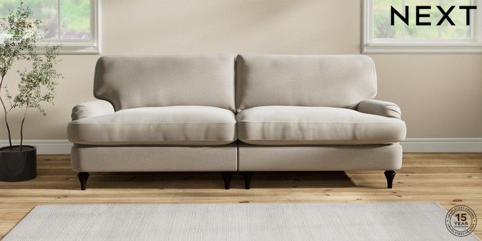 6.12.1 Buy Sadie Deep Relaxed Sit 4 Seater Sofa Ripple Chenille Light Natural High Slim Turned - Dark from the Next UK online shop Click here to use our accessible website